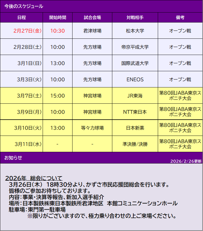試合結果&スケジュール<2月-3月>