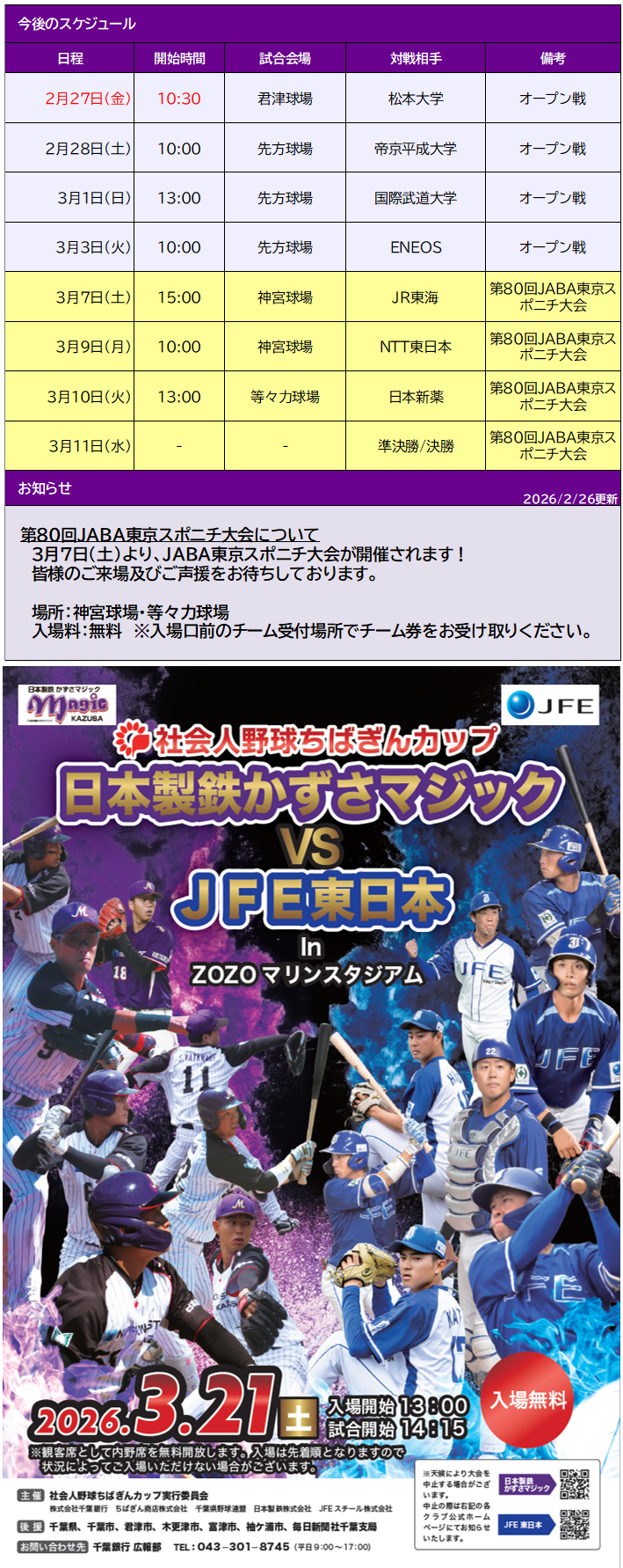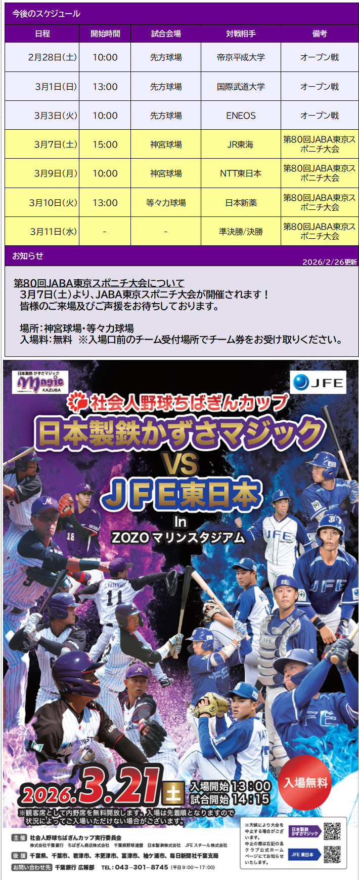3月7日(土)より 第80回JABA東京スポニチ大会について